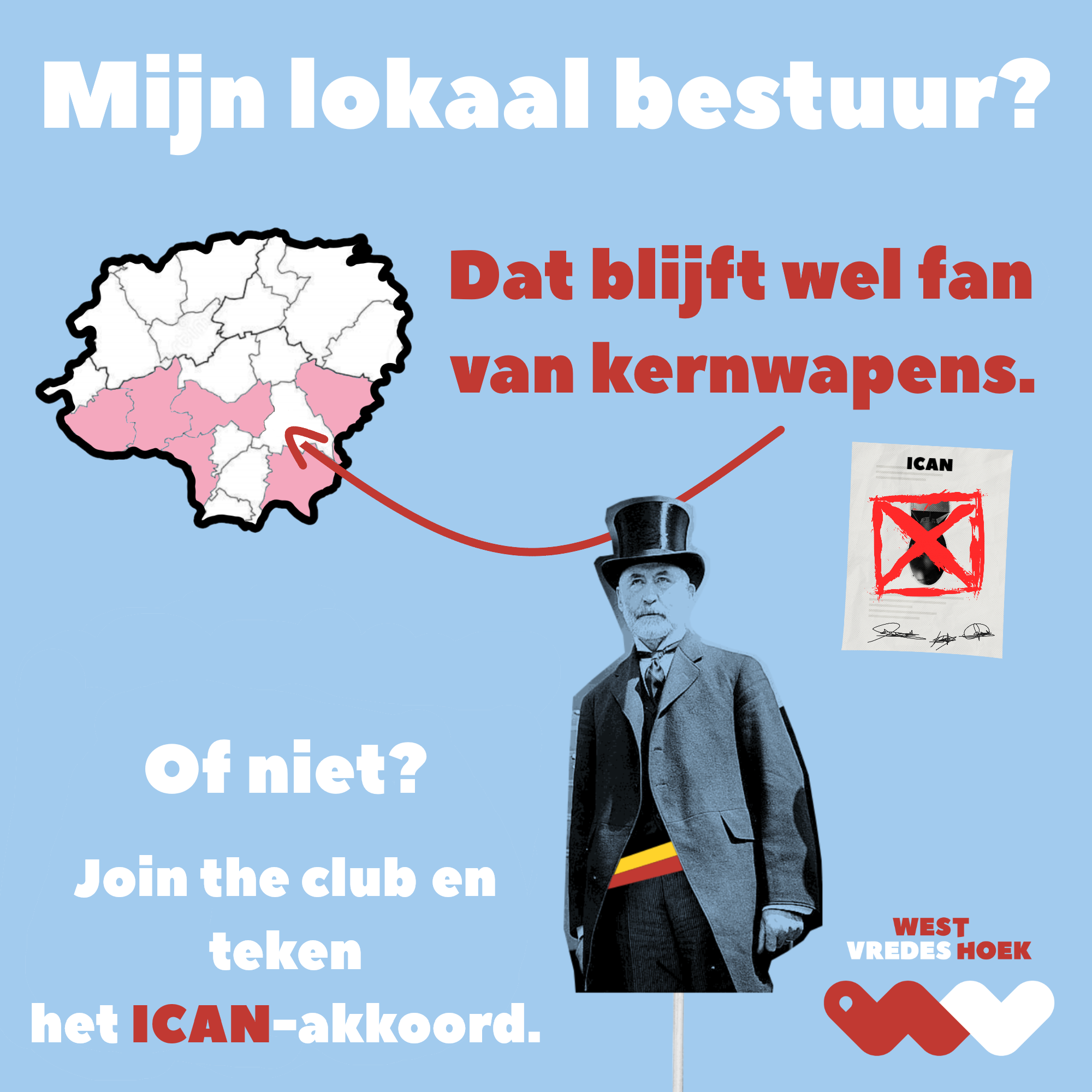 Hoe kan jij je steentje bijdragen tot een kernwapenvrije wereld? Het lijkt haast een onmogelijke opgave. Toch kan ook jij impact hebben op het beslissingsproces van jouw lokaal bestuur. Met een simpele brief of e-mail richting de burgemeester, een schepen of een gemeenteraadslid raak je al een heel eind.